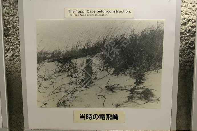 建設前「当時の竜飛崎」の様子。本州と北海道は青森からの青函連絡船によって賄われていたため、津軽海峡の先端の竜飛など不毛の大地だった。
