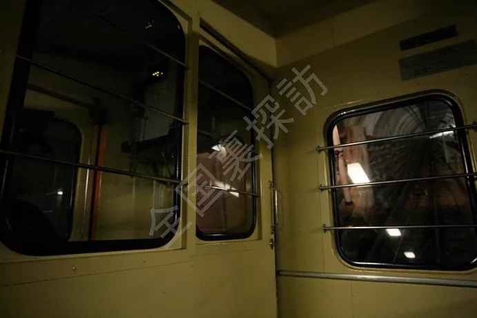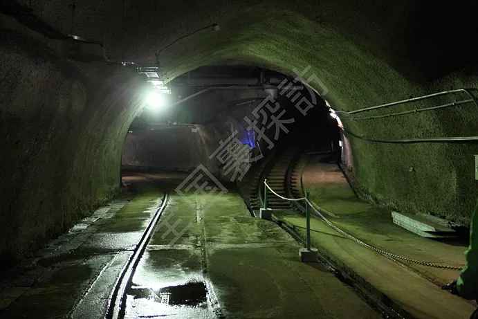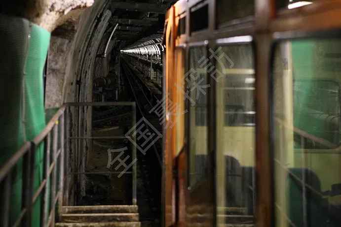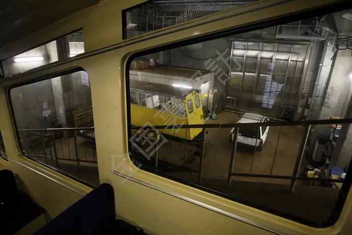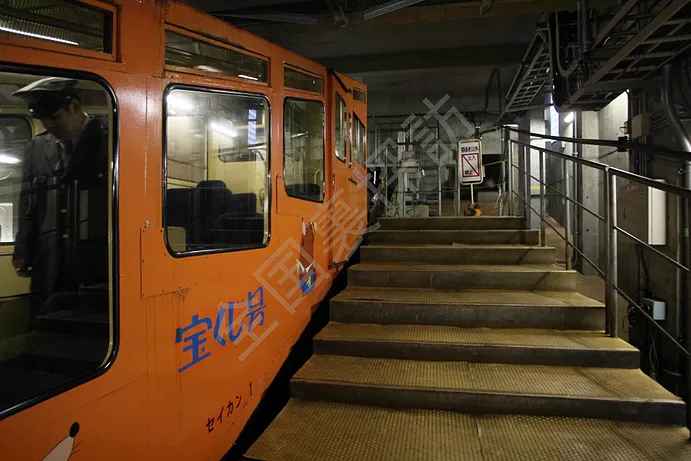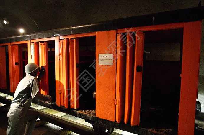 「水平人車」作業現場と斜坑底の間を作業員を載せて移動する。