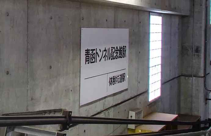 「青函トンネル竜飛斜坑線 体験坑道駅」単線単行方式のケーブルカーで体験坑道駅から青函トンネル記念館駅の間の走行距離は778m、最急勾配250 ‰となる。