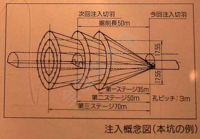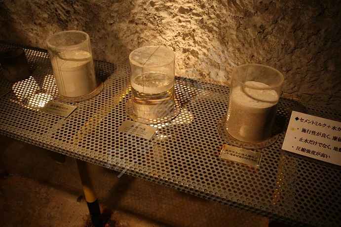 青函トンネルの海面下の激しい水圧に耐えるため、予めこの特殊セメントを掘り進める方向の岩盤に注入孔を空け注入し、それを固まらせたから地盤掘削をした。その注入範囲は、トンネル直径の約3~5倍に及んだ。