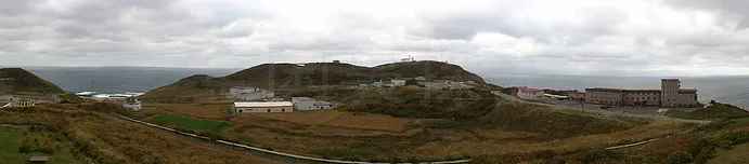 「竜飛崎展望台」から北側のパノラマ写真。竜飛崎は、中世より北前船の寄港地“三厩”とほぼ同じ場世に位置し、少しの栄を見せた。明治に入り、日清戦争日露戦争と続き、ロシアを仮想敵国とした大日本帝国はこの地に、1901年(明治34年)“龍飛望楼”を設置。さらに1937年(昭和12年)に津軽要塞として砲台を建設。以後は仮想敵国がアメリカに代わり、1940年(昭和15年)に帝国海軍が龍飛特設望楼を設置。敗戦後役目を終えた。